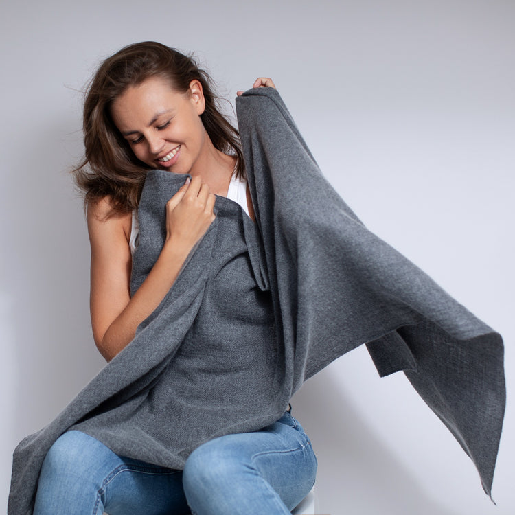 Indulge in the luxury of Mongolian cashmere with a shawl that offers unmatched softness and warmth. Perfect for sensitive skin, its hypoallergenic properties provide gentle comfort, while its natural fibers release oxytocin—the "love hormone"—creating a soothing and calming experience every time you wear it.